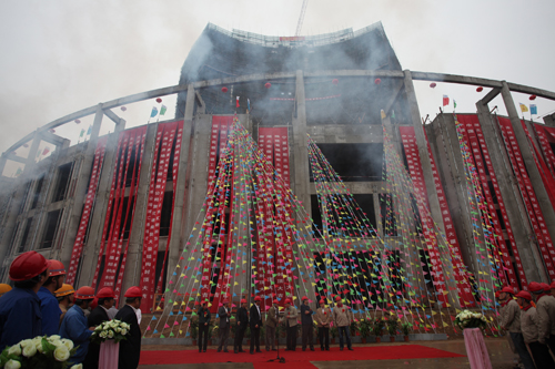 10月16日上午,山東匯通國際金屬物流園內禮花飛舞,鞭炮齊鳴,匯通國際金屬商貿大廈喜封金頂。中國一冶集團公司副總經理田國清、集團公司董事長賀懷智、蔣官屯辦事處主任劉東華分別致辭。