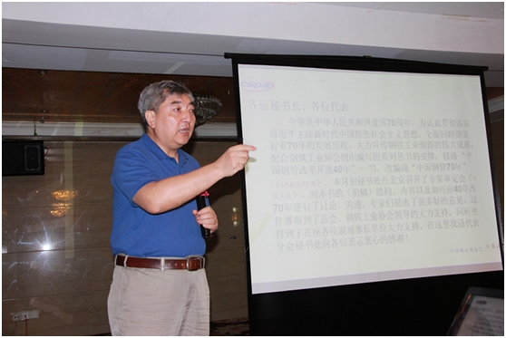 莊鋼顧問介紹了《中國鋼管70年》的編寫工作。指出,《中國鋼管70年》將以歷史的回顧、翔實的史料、案例的印征、樸素的語言、精美的裝禎向建國70周年獻禮。