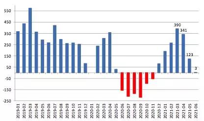 2021上半年我國鋼材出口量同比增長30.2%,較2020全年出口量相差1629.5萬噸。繼5月出口量顯著回落后,6月再度回升至645.8萬噸。具體情況如下:
