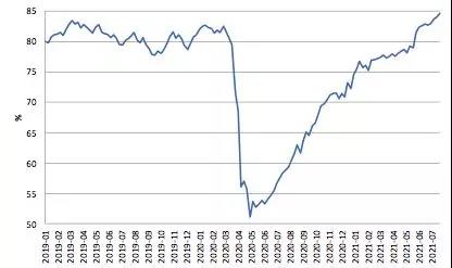圖5 美國粗鋼產(chǎn)能利用率(當周值)