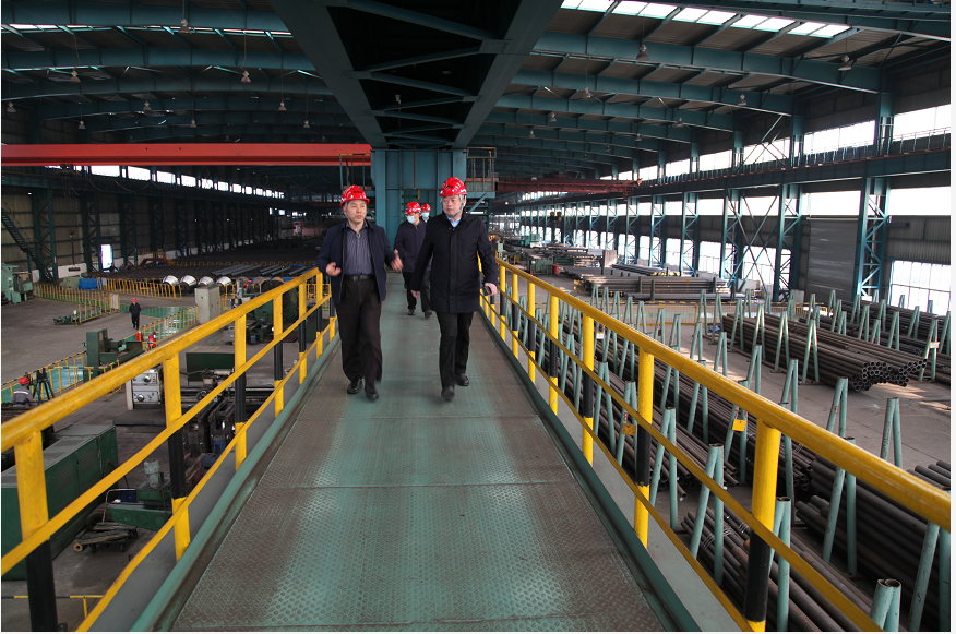 陳培敦一行首先參觀了φ273生產線,深入了解了273生產線的生產能力、產品結構、生產工藝、設備設施及安全環保等工作,對企業現代化的生產工藝,良好的生產環境及電腦自動化控制系統給予了高度評價和贊揚。